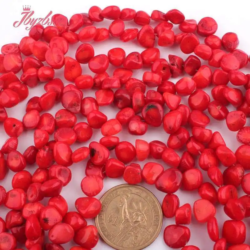 5x6-6x8mm свободный красный коралловый бисер Свободный натуральный камень бусины для DIY ожерелья Браслет для изготовления ювелирных изделий Strand 15"