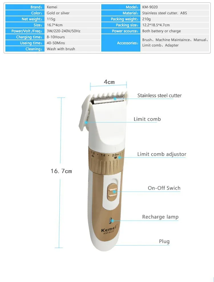 Примечание: Не используйте машинки для стрижки кошек, собак или других домашних животных.Никогда не используйте устройство в ванной или других областях с высокой концентрацией влаги.Не прижимайте режущие края к коже, так как это может привести к запросу кожи.Всегда храните устройство в недоступном для детей месте.