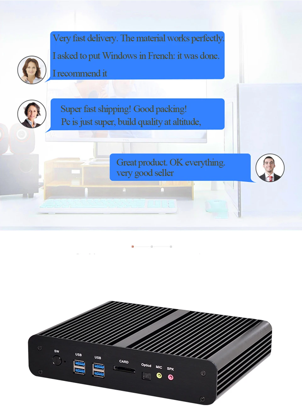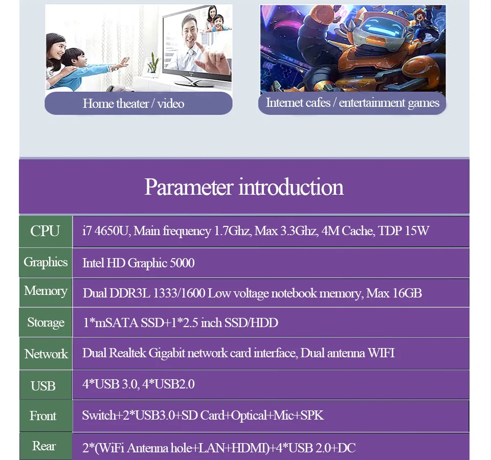 1.Процессор Intel CoreI7 4500U2 ядра 4 потока 4 МБ кэш1,8 ГГц Макс 3,0 ГГцTDP 15 Вт графикаHD 4400.2.Процессор Intel CoreI7 5500U2 ядра 4 потока 4 МБ кэш2,0 ГГц Макс 3,0 ГГцTDP 15 Вт графикаHD 6000.Эта ссылка только для i7 5550U, если нужен другой процессор,Пожалуйста, посетите здесь.Как выбрать конфигурацию?Например:1. Вы нажимаете"Без хранения"ОтЦветИ"Без оперативной памяти"ОтКомплект, Мы отправим мини-ПК с процессоромI7 5550U, но без оперативной памятиВключены иНет O/SДля вас.2. Вы нажимаете"128 Гб SSD"ОтЦветИ"8 Гб оперативной памяти"ОтКомплект, Мы отправим мини-ПК с процессоромI7 5550U 8 Гб Ram 128 Гб SSDИПредустановленная WindowsДля вас.![]()