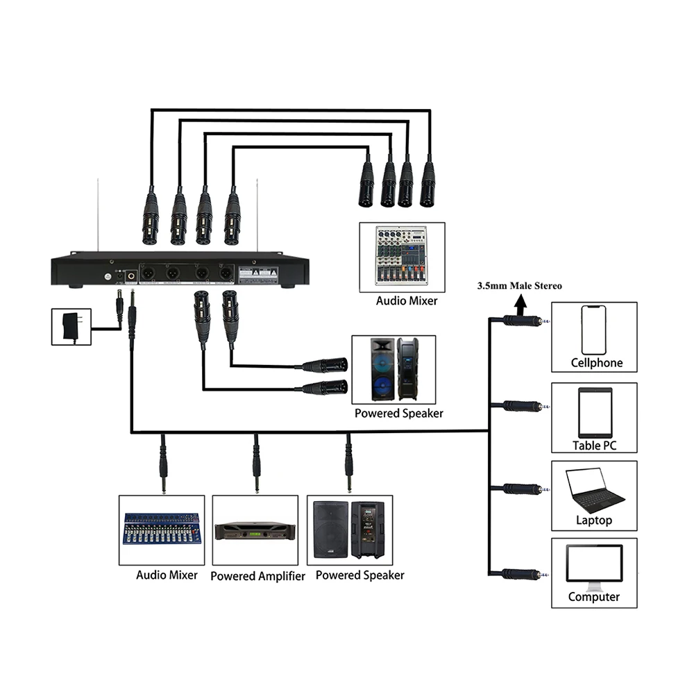 Динамическая портативная или гарнитура: 350 футов (100 метров) 4 шт. беспроводной Динамический Ручной или гарнитура микрофон источник питания