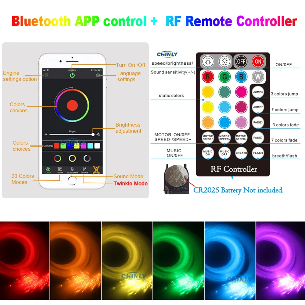 * Оптическое волокно ярких цветов и ритм ударов, широко используется для украшения занавесок, экрана, потолочного неба.