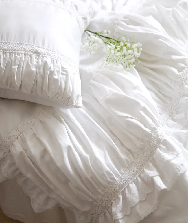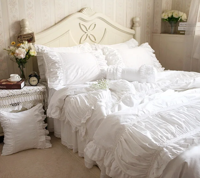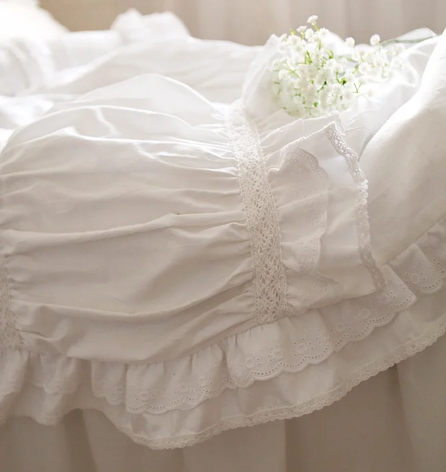 Комплект кружевного постельного белья с вышивкой (3 шт./компл. или 4 шт./компл.)