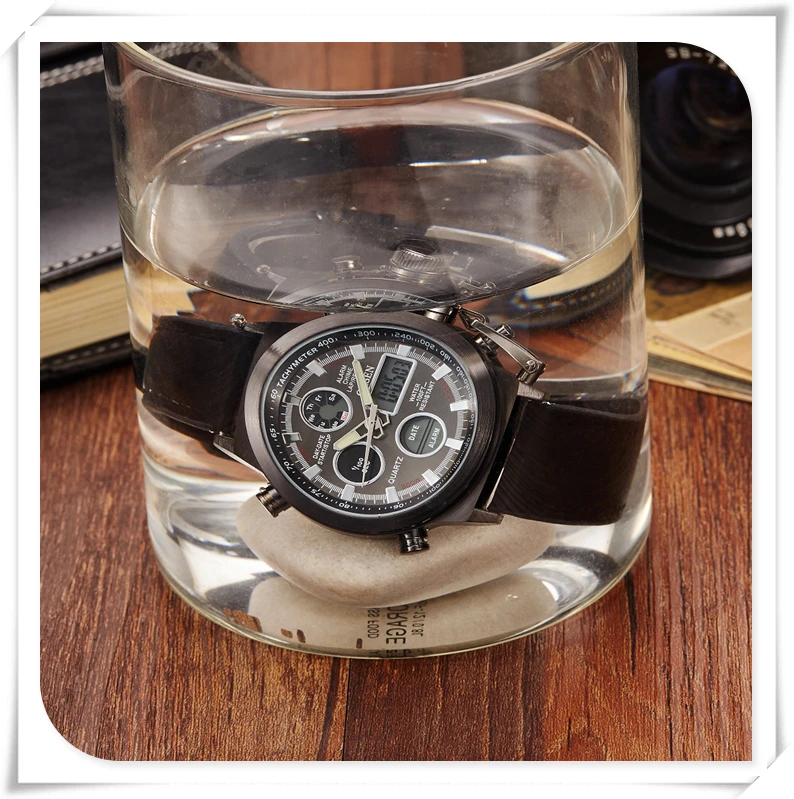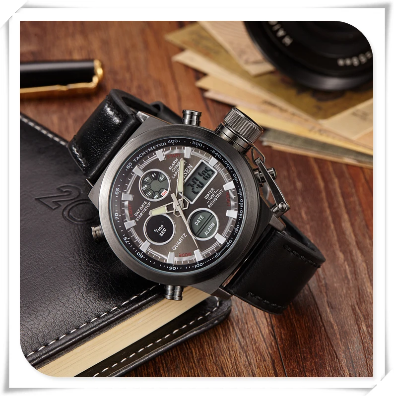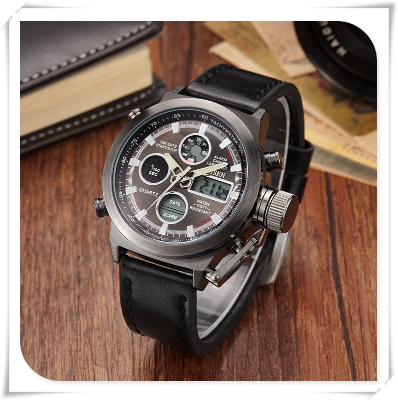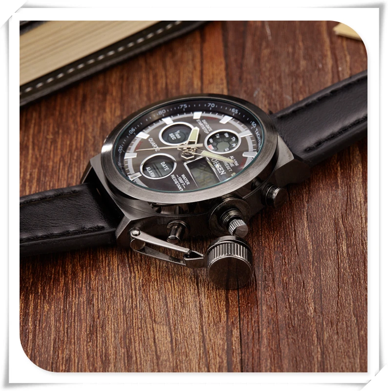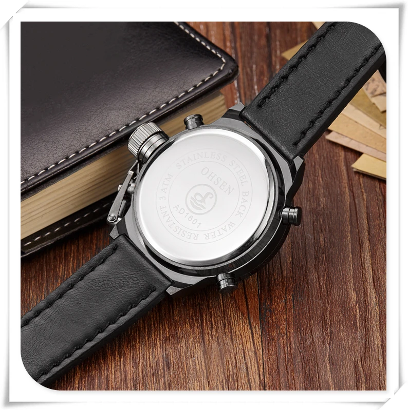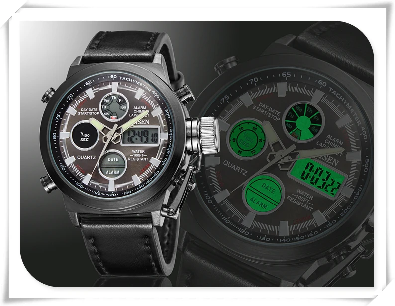 Характеристики: -Чехол Диаметр: 45 мм/1,755'' -Чехол Толщина: 17 мм/0,663'' -Материал ремешка: холст/резина/кожа -Длина ремешка: 260 мм/10,14 дюйма -Ширина ремешка: 22 мм/0,858 дюйма -Длина ремешка: 245 мм/9,55 дюйма -Ширина ремешка: 23 мм/0,89 дюйма -Длина ремешка: 240 мм/9,43 дюйма -Ширина ремешка: 21 мм/0,82 дюйма Особенности: -Чехол для часов из нержавеющей стали высокой плотности -Japan Maxell button cell, более длительный срок службы -Задняя крышка из нержавеющей стали с лазерным логотипом OHSEN -Пряжка из нержавеющей стали, легкая регулировка ремешка -OHSEN бренд спортивные часы серии, привлекательное сочетание спорта и технологического очарования -Двойной Индикация времени, зазор светодиодный цифровой микширующий традиционный аналоговый дисплей с двумя часовыми поясами позволяет вам знать время более точно, независимо от того, где вы находитесь -Цифровой: час, минута, секунда, pm, месяц, дата, день -Формат 12/24 часов -Будильник и функция ежечасного звонка -Функция секундомера специализируется на вас, кто любит спорт -Специальная конструкция с хронограф (секундомер) при температуре не выше 0,01 второй шаг -Глубина водонепроницаемости до 50 м (не нажимайте кнопку в воде) -Люминесцентные стрелки и ЖК-подсветка позволяют четко знать время в темноте -Ударопрочность, подходит как для занятий спортом на открытом воздухе, так и для занятий спортом в помещении -2 года батареи с длительным сроком службы, гарантия 12 месяцев по всему миру
