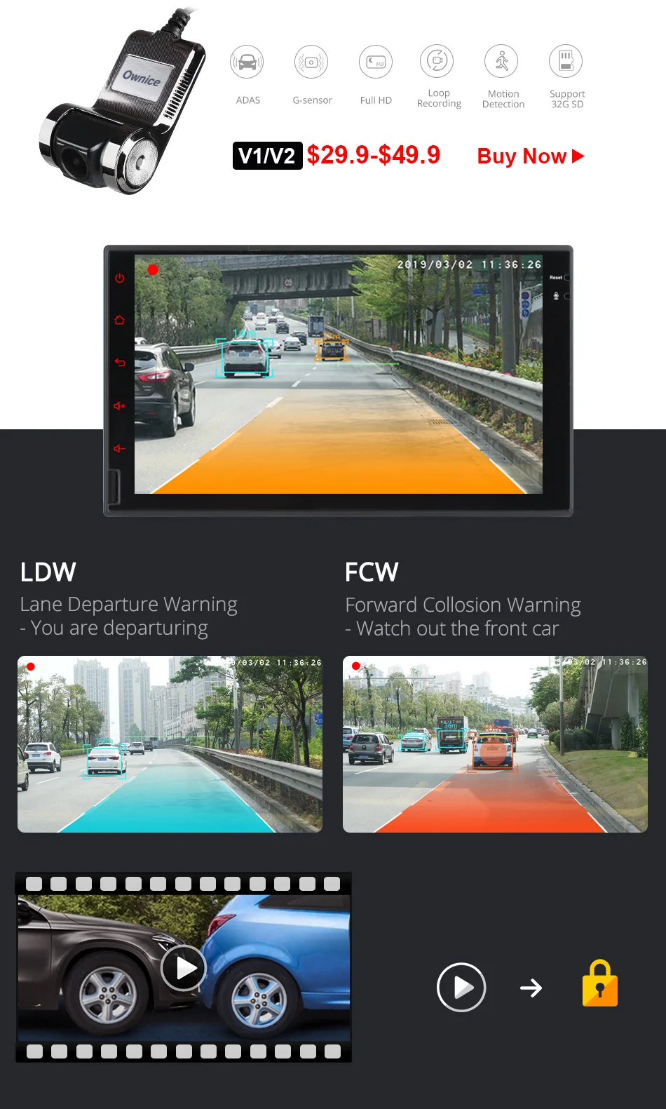 The Ownice device comes with Built-in ADAS Security System, Advanced Driving Alarm Systems is useful to keep your driving safer, (Extra cost for Ownice DVR