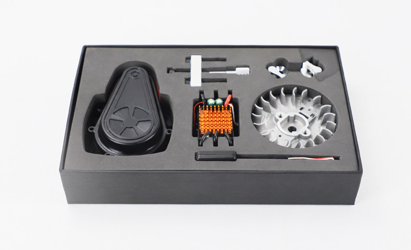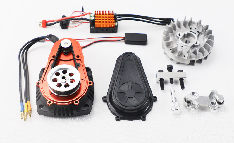 无刷启动系统总装图片:带有 80A 启停电调,一键熄火模块,发动机磁飞轮拆装工具以及磁飞轮