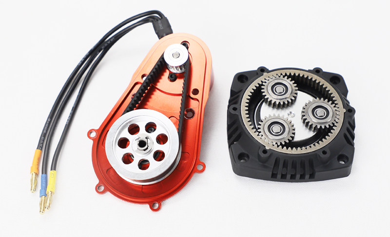 减速系统:一档采用皮带轮传动装置,二档采用星系齿轮组传动
