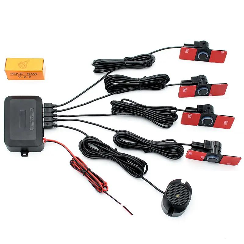 1 х Главный блок управления 4 x Датчики парковки с линией 2,5 м 1 х Кабель питания 1 x кольцевая пила 8 x Двусторонняя клейкая прокладка 1 x Руководство пользователя