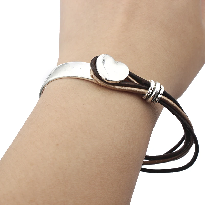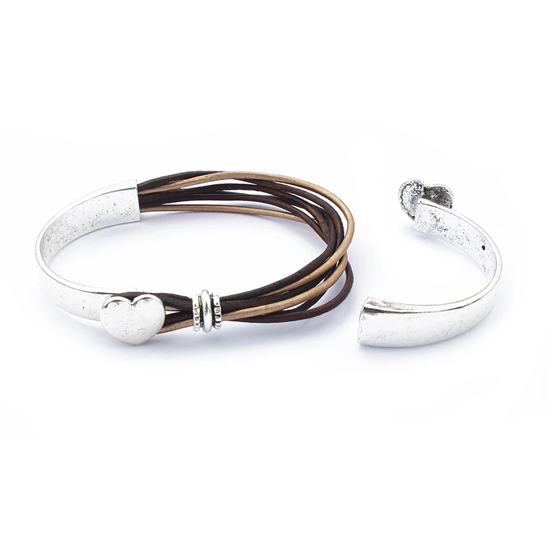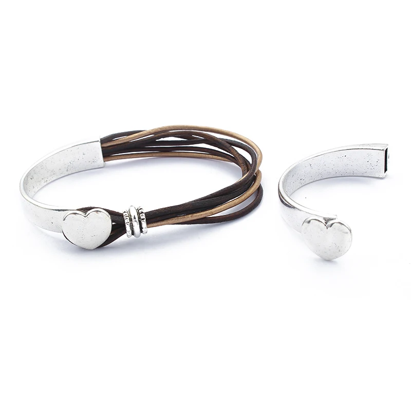 3 комплекта Сердце половина манжеты крючок браслет в поисках для 2*8 мм кожаный шнур браслеты ювелирные изделия ручной работы DIY Подвески пряжки аксессуары