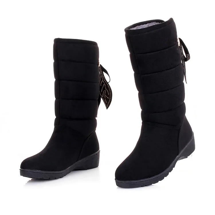 Женские ботинки на шнуровке зимние средней длины из ПУ кожи с круглым носком