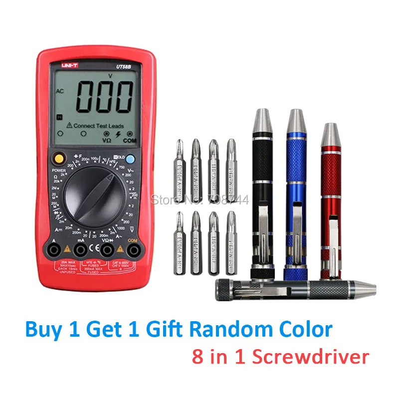 UT58B Универсальный цифровой мультиметр UNI-T тестирует напряжение и ток переменного/постоянного тока, температуру и многое другое, с удержанием данных и Полноразмерным дисплеем .