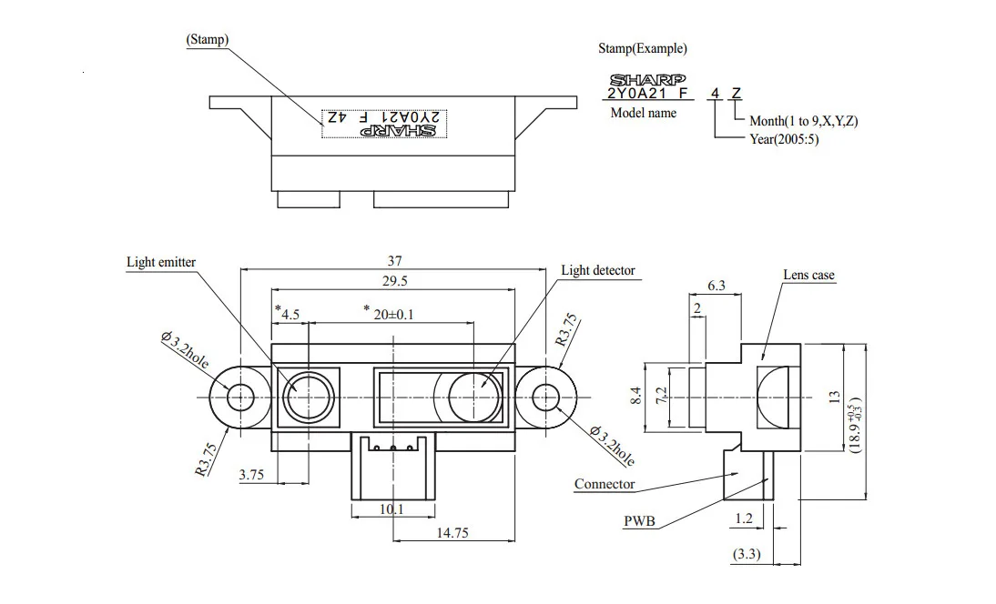 Пример характеристик измерения расстояния (выход):