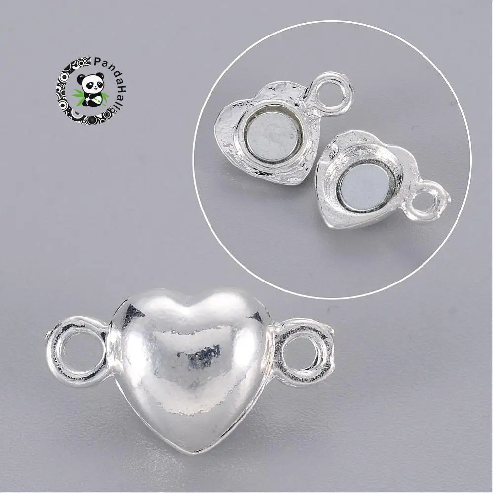 Латунные Магнитные застежки, без никеля, сердце, серебро