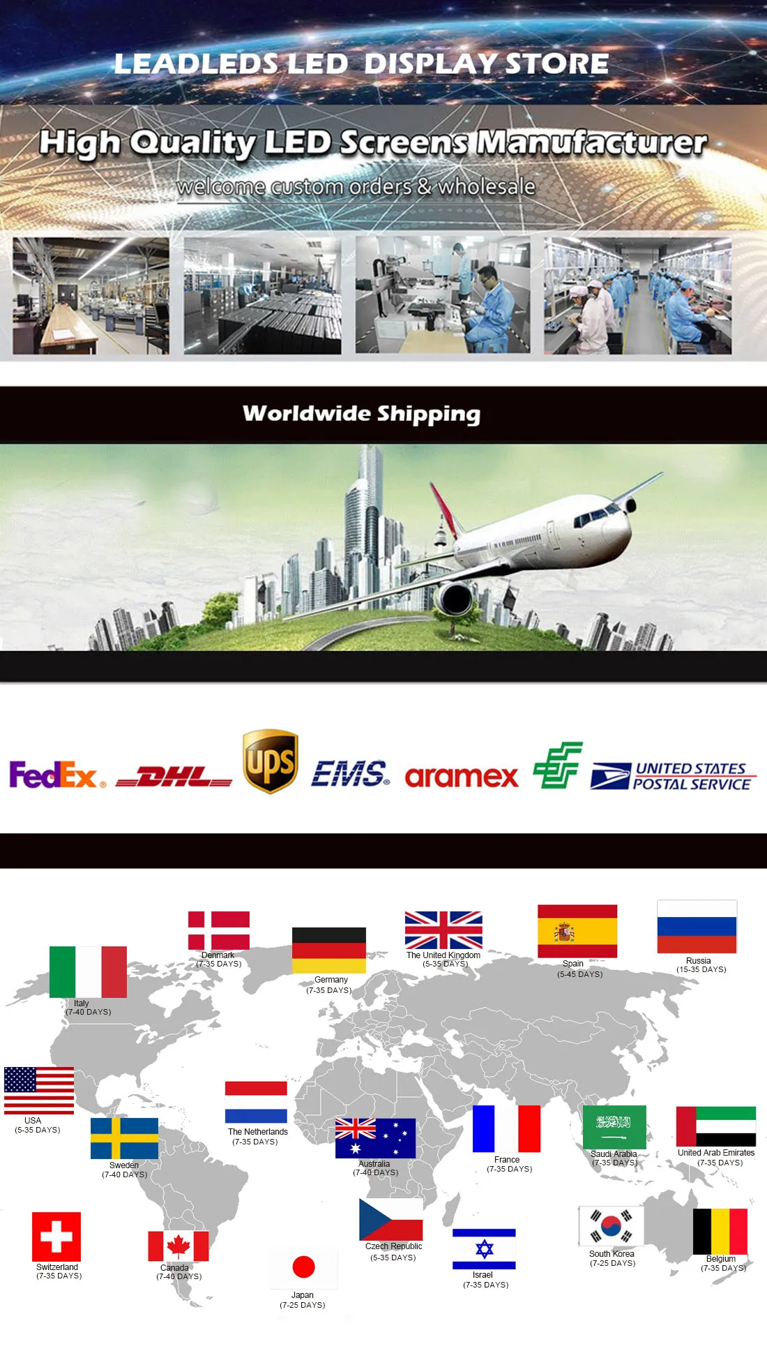1. Цвет корпуса Черный 2. Материал корпуса-алюминий 3. Размер шрифта Текстового Сообщения регулируется 4. Функция отображения текстовых сообщений и графики 5. Флэш-память может хранить много различных сообщений 6. Входное напряжение-110 В-240 В переменного тока 7. WiFi (по умолчанию), USB интерфейс опционально 8. Мульти-действие для показа, включая снег, спрей, мерцание, поворот, прокрутка, Звездный взрыв, протрите и т. Д. Различные действия прокрутки на ваш выбор, такие как мигание, статическое движение, перемещение влево, перемещение вправо и так далее. 45 видов подвижных действий. Таймер ВКЛ/ВЫКЛ. Регулируемая яркость 16 уровней. Энергоэффективность, поддержка автоматического включения/выключения в соответствии с вашими настройками. 9. Текстовые сообщения могут быть прокручены и запрограммированы компьютером windows через USB или WIFI через iPhone или Android телефон