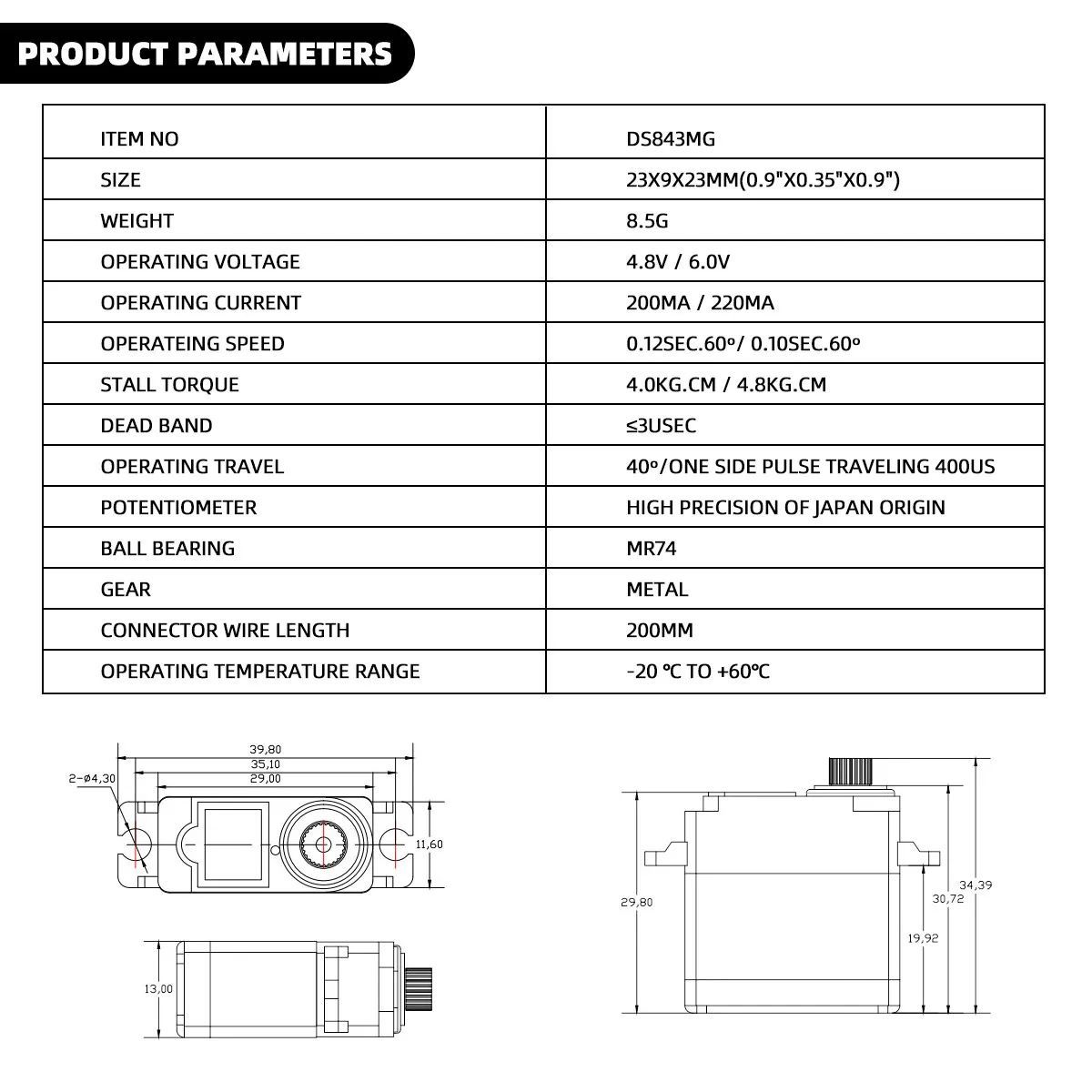 Крутящий момент, крутящий момент: 4kg.cm/4,6 kg. См