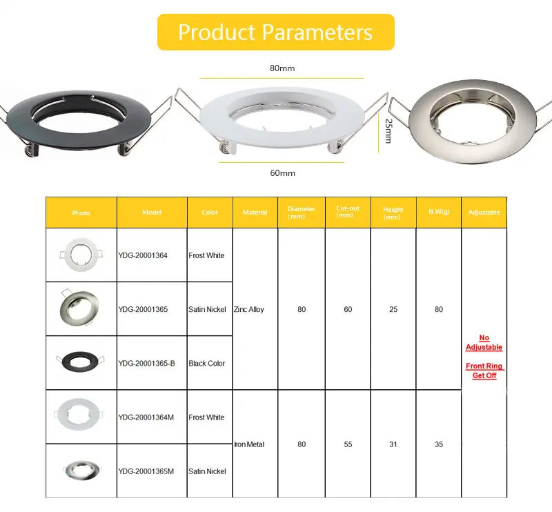 | Подходящий светильник | MR16/GU10/50 мм Диаметр лампы |