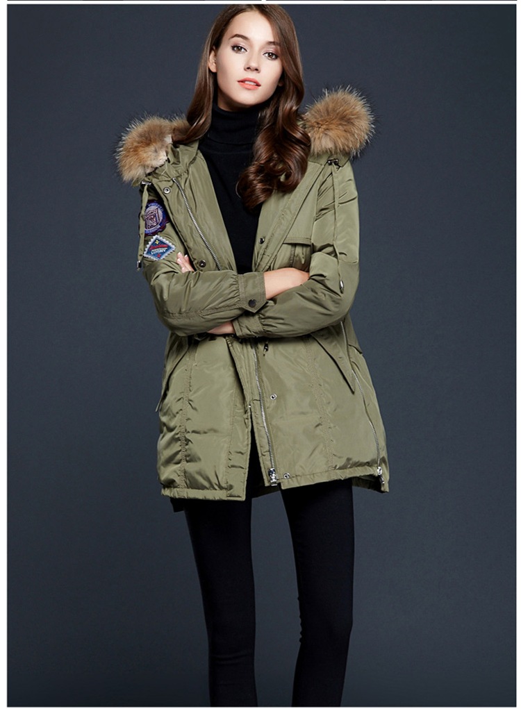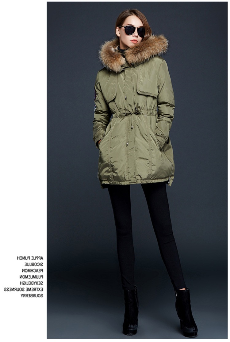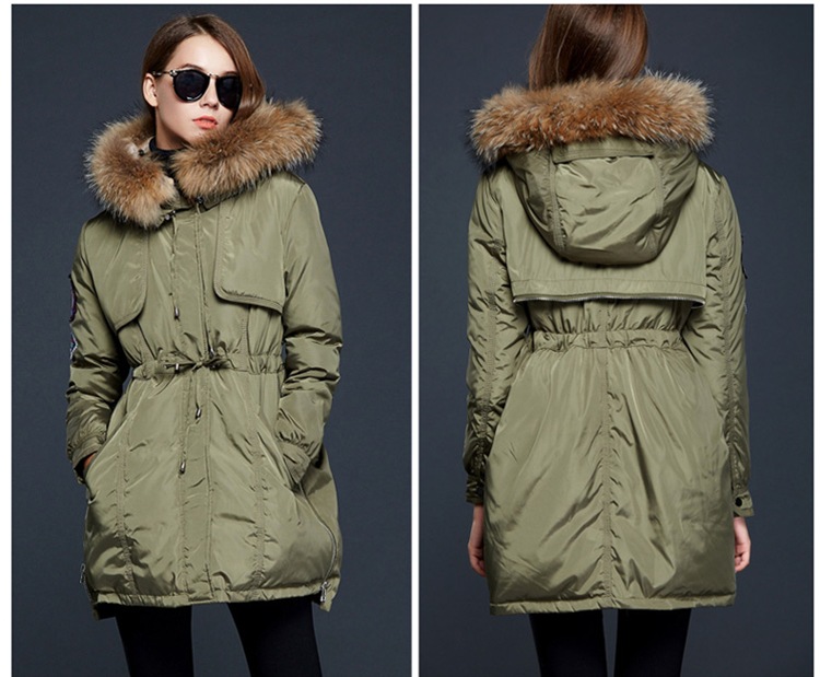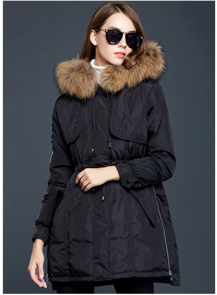 зимняя Куртка Женщины 2016 Пальто Естественно Реального Енота Меховым Воротником с капюшоном Теплый Пуховик Куртка Женская Пальто И Куртки DHL бесплатно