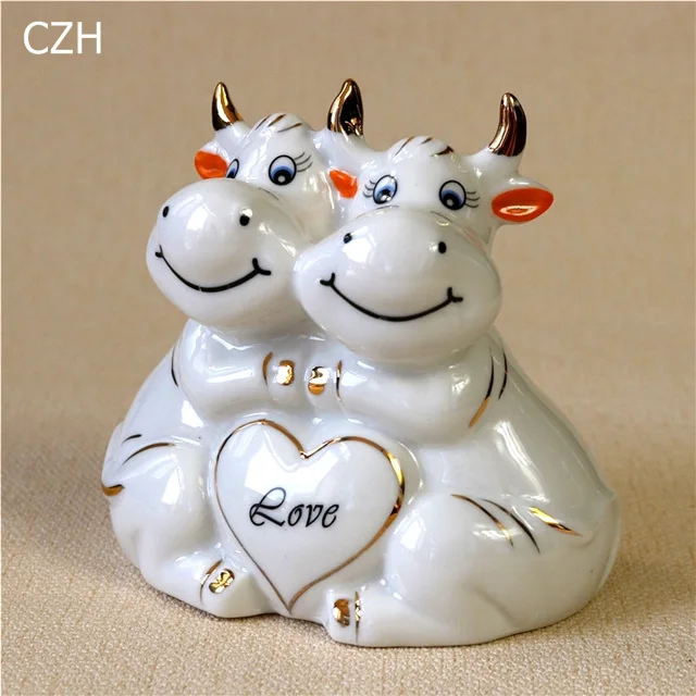 1. Описание: милая фарфоровая пара, фигурка быка, керамический бык, миниатюрный коровий орнамент, ремесло, Декор, свадебный подарок на день Святого Валентина, аксессуары.