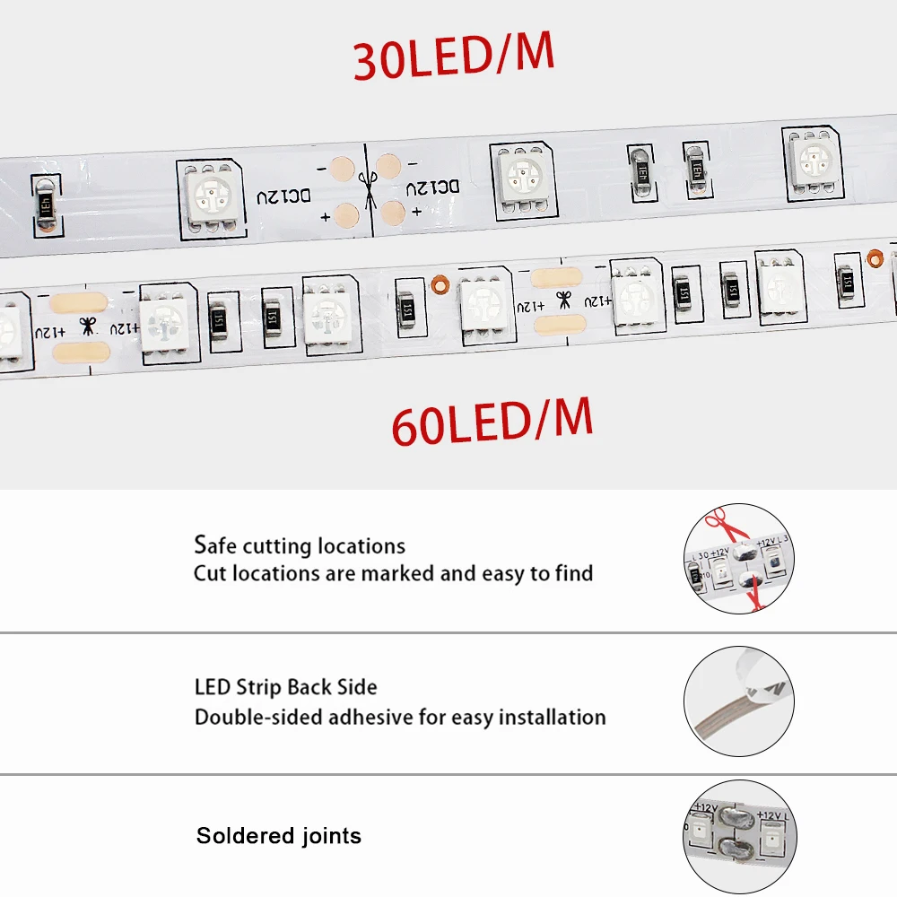 * Используйте питание для тестирования светодиодных лент перед установкой.