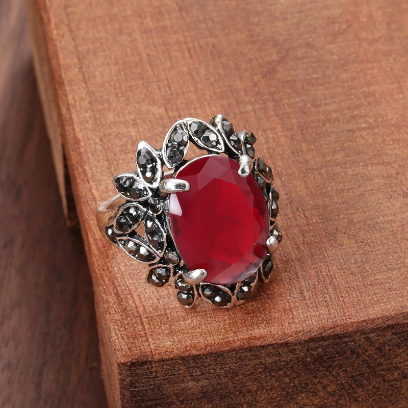 Модный рубин, ювелирное изделие, Farfalle Flower Victoria Wieck, свадебные кольца, Bisuteria Mujer, цвет: старое серебро, ретро кольцо