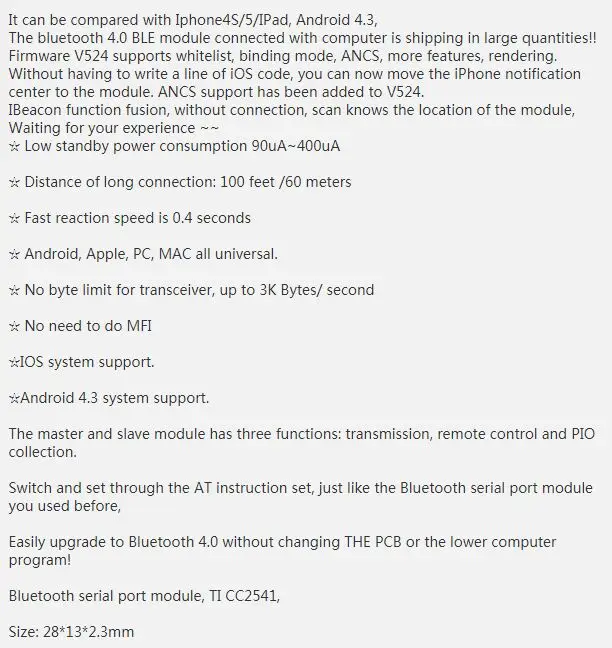 AT-05 BLE Bluetooth 4,0 Uart модуль приемопередатчика CC2541 центральный коммутационный совместимый HM-10