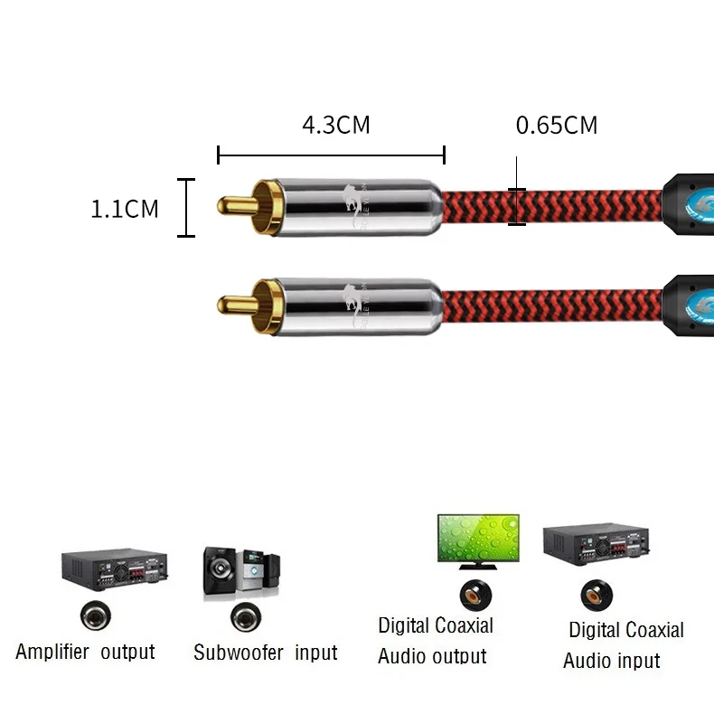 RCA стерео аудио кабели отлично подходят для подключения стерео, DVD, HD-TV и всех других аудио-устройств домашнего кинотеатра. Кабель сабвуфера для подключения сабвуфера к стереоприемнику, звуковой системе или другому совместимому аудиоустройству.