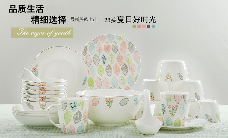 Набор из 28 предметов, настоящая Изысканная столовая посуда из китайского фарфора, керамическая тарелка и ложка, кухонный термос для обеденное обслуживание