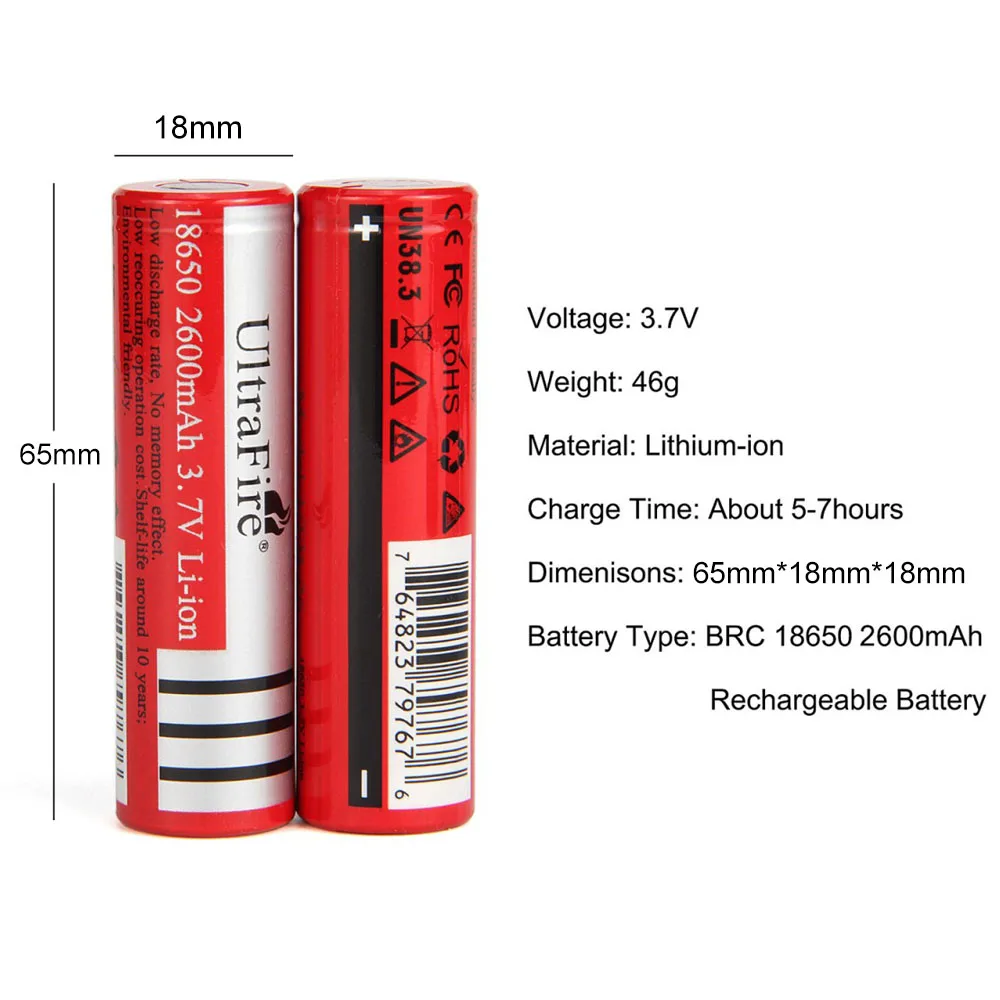 UltraFire аккумулятор: комплект из двух 2600 мАч литий-ионных аккумуляторов 18650
