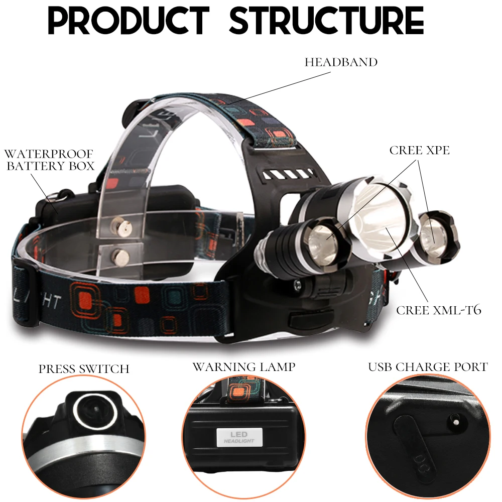 T6 светодиодный головной светильник налобный фонарь лампа светильник 4 режима фонарь