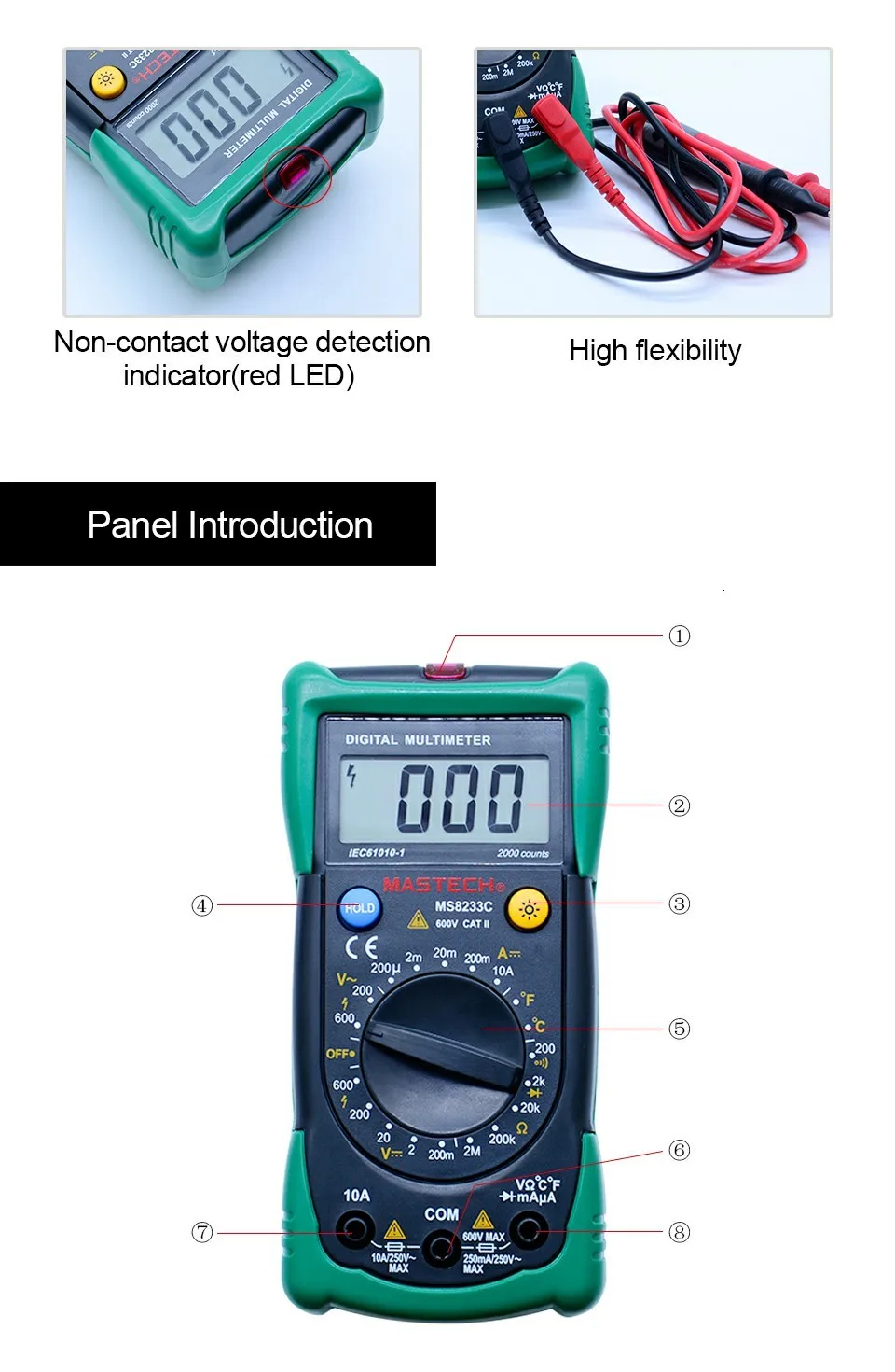 MASTECH MS8233C Цифровой бесконтактный мультиметр AC DC Напряжение Ток Емкость Частота температура тестер мультиметр Детектор