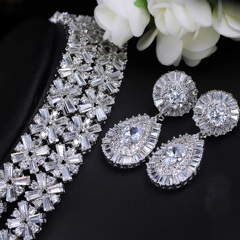 Женский комплект из кольца и серёг с фианитом|jewelry sets for women|crystal jewelry setfashion set |