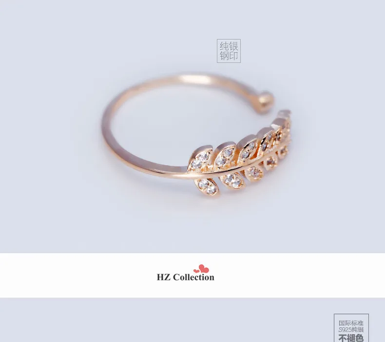 Новые милые листья ветки регулируемые 925 Серебряные кольца для женщин | Everlast корейская мода перо стерлингового серебра-Ювелирные изделия Подарки