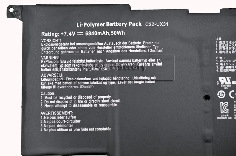 | Бесплатная доставка C22-UX31 C23-UX31 Оригинальный аккумулятор для ноутбука Asus Ultrabook ZENBOOK UX31 UX31A UX31E 7,4 V 6840 мА/ч, 50WH |