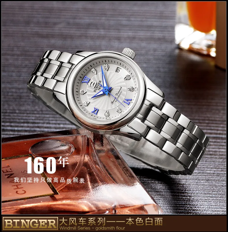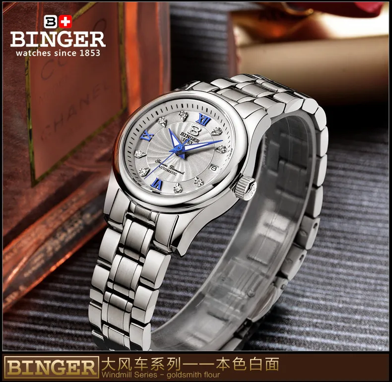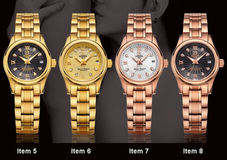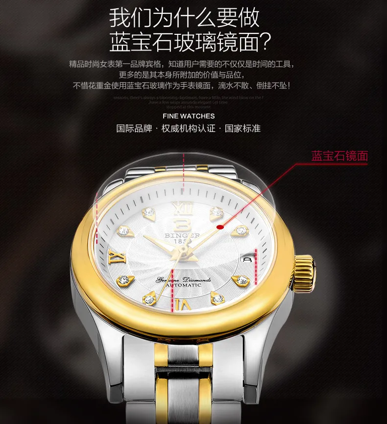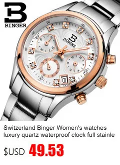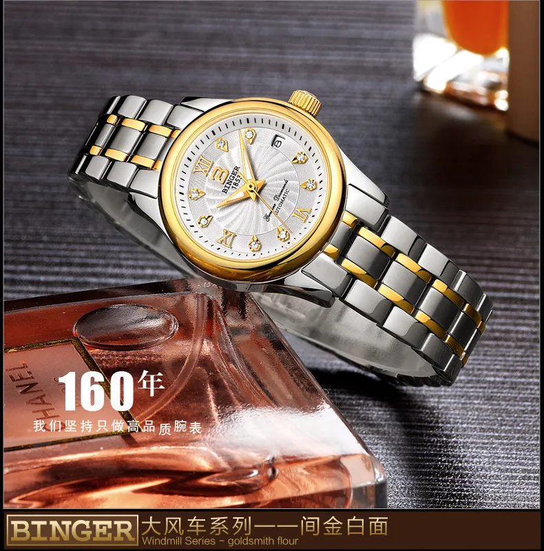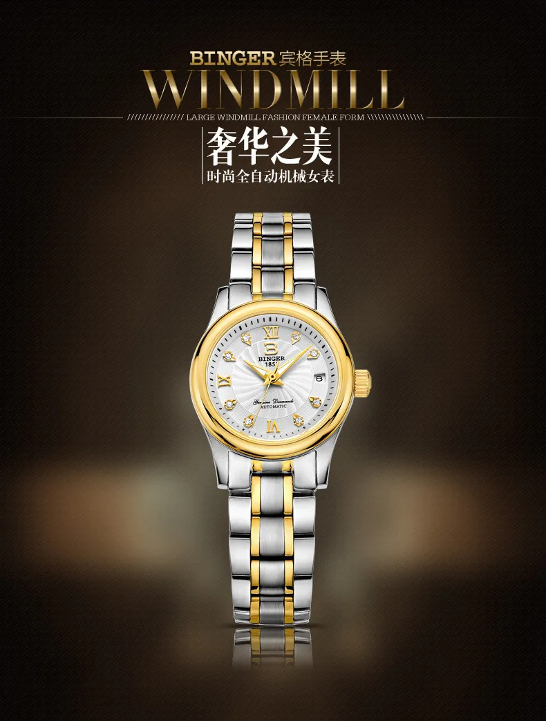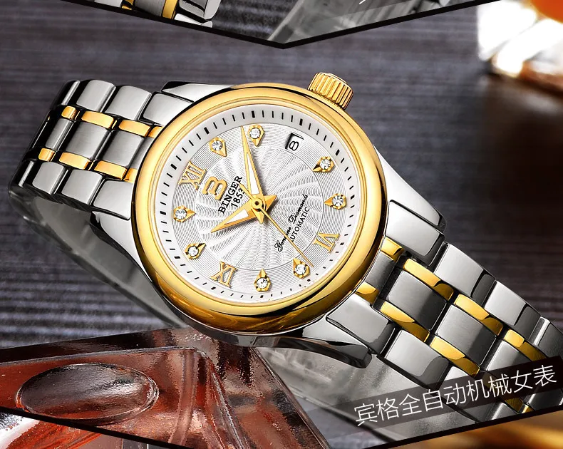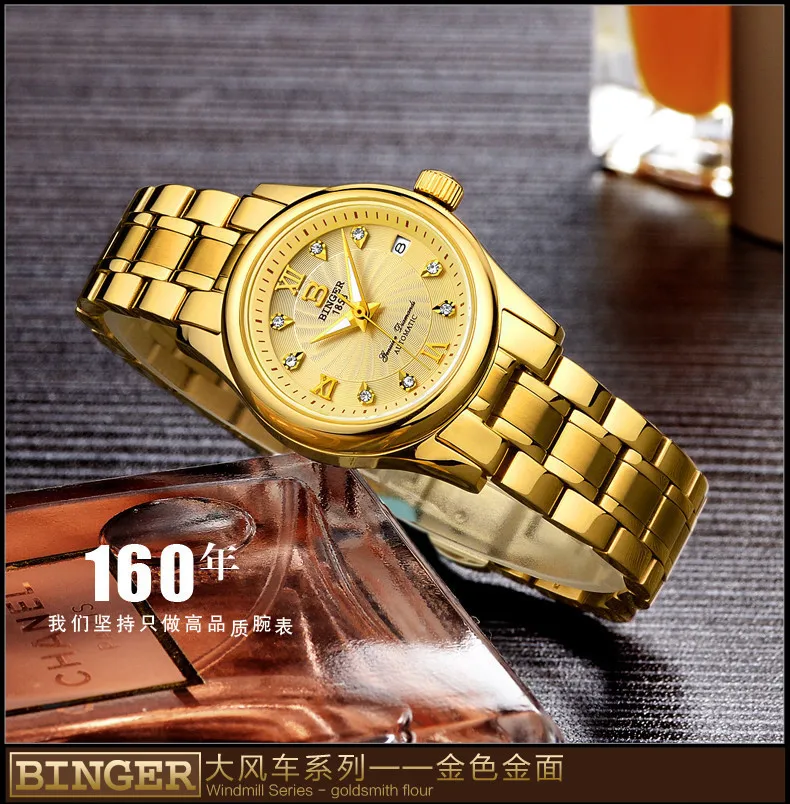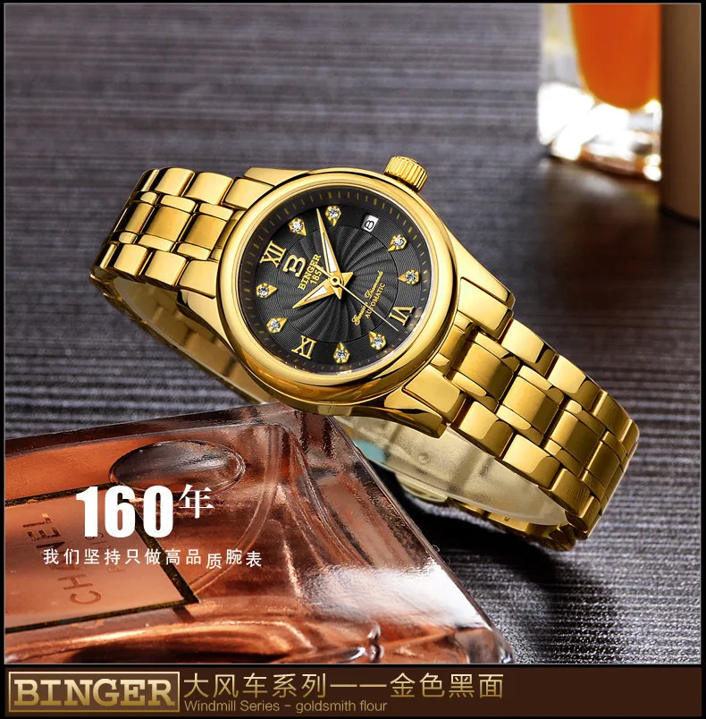 BINGER 18K золотые часы для женщин самобветренные механические наручные часы
