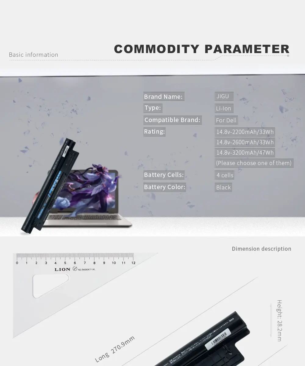 Название:JIGU ноутбука Батарея INS15SD-1308B для Dell 49VTP 4DMNG 6HY59 G35K4 MK1R0 TT5W для Inspiron 14 3000 серии (3421) V1YJ7 XRDW2