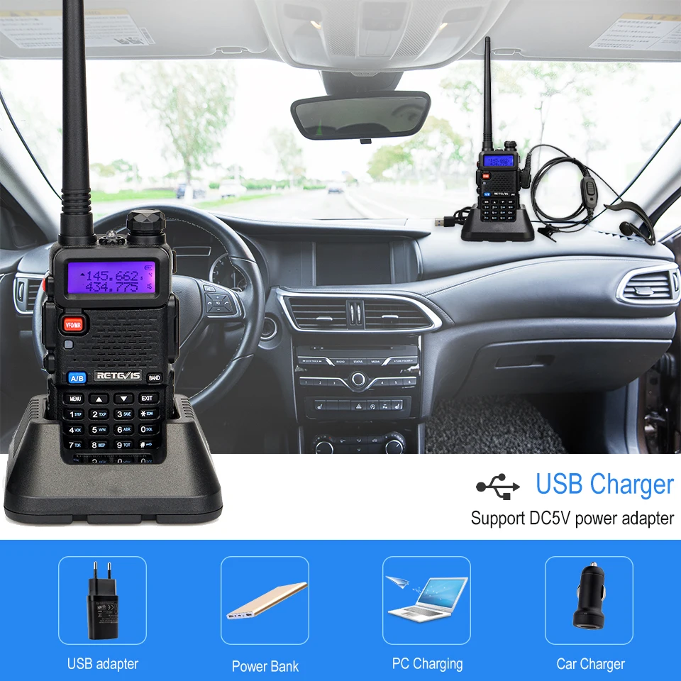 Retevis RT5R портативная рация 5 Вт UHF + VHF радио USB зарядное устройство VOX FM Ham радиостанция портативный приемопередатчик Comunicador для охоты