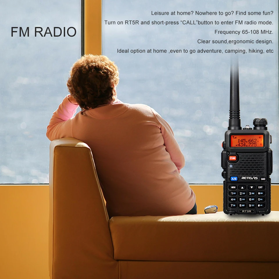 2. Fm-радио: RT5R рации могут использоваться в качестве радио, Частота Радио 65-108 МГц, звук четкий, он прост в использовании, дизайн эргономичный, это идеальный вариант для приключений, кемпинга, пеших прогулок и т. Д.
