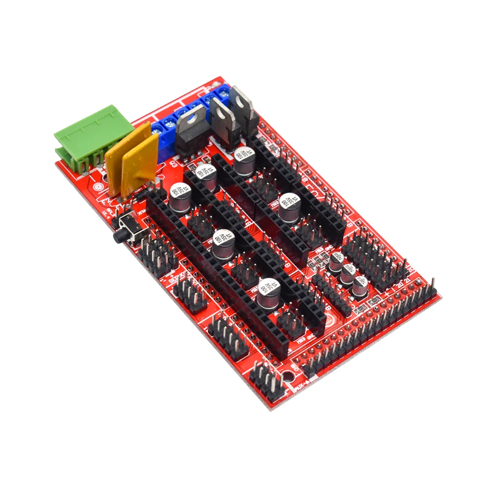 RepRap Mega Pololu щит, или пандусы для коротких. Он предназначен для всей электроники, необходимой для RepRap в одной маленькой посылка по низкой цене. RAMPS соединяет Ard Mega с мощной платформой Ard MEGA и имеет много возможностей для расширения. Модульная конструкция включает в себя штепсельные Шаговые драйверы и электронику управления Экструдером на Ard MEGA shield для легкого обслуживания, Замены деталей, возможности обновления и расширения. Кроме того, к системе может быть добавлен ряд Расширительных плат Ard, если основная плата RAMPS находится в верхней части стека.Версия 1,4 использует поверхностное крепление конденсаторов и резисторов для дальнейшего покрытия краев.