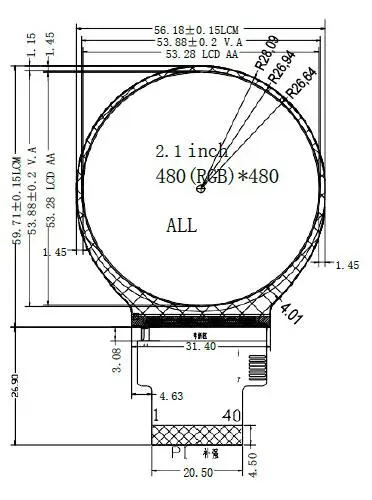 IPS 2,1 дюймов TFT ЖК-дисплей круглый Экран