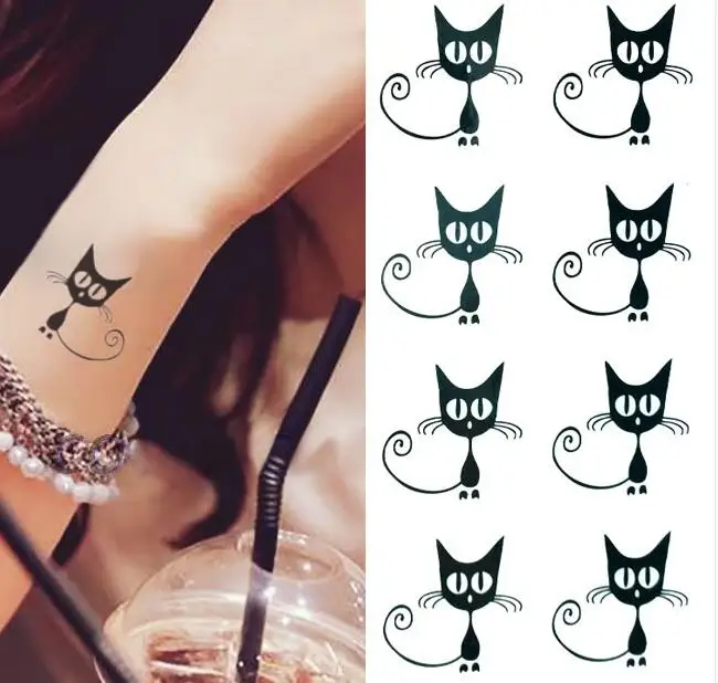 Маленькая фигурка татуировки наклейки прекрасный кот обратно вода...