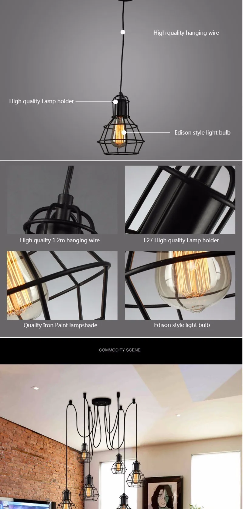 4. Светильник Тип источника: E27 edison лампы или светодиодные лампы
