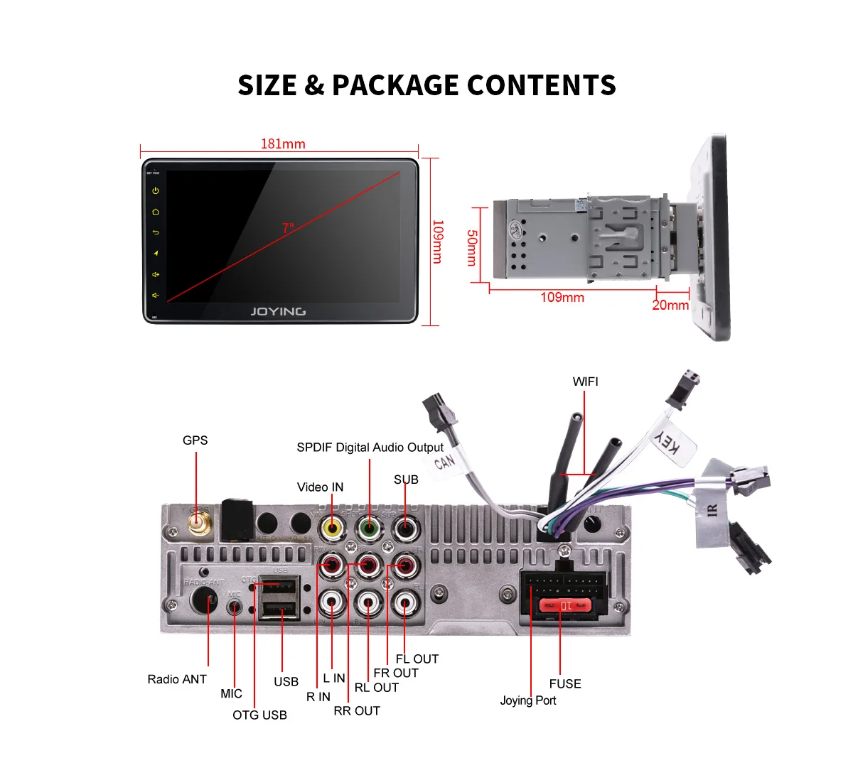 Процессор: Восьмиядерный процессор Intel 1,8 ГГц Оперативная память: LPDDR4 2 Гб Вспышка: EMMC 32 Гб Чип усилителя: TDA7851, радиочип: TEF6686. Новый JOYING блок теперь поставляется с SPDIF цифровой аудиовыход. Для максимального качества звука вы можете напрямую подключить внешний усилитель/DSP к цифровому выходу SPDIF; если ваш внешний усилитель/DSP не поставляется с входом SPDIF, вам нужно будет подключить усилитель/DSP через FL/FR out & RL/RR out. Примечание: в головном устройстве нет слота для DVD. Он не поддерживает dvd. И не поддерживает видео.