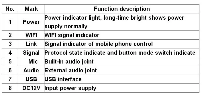 WI-FI: WI-FI индикатор сигнала, светильник s вверх при подключении к сети нормально; В том случае, если он не присоединился к беспроводной сети, он не светильник или похода по магазинам.