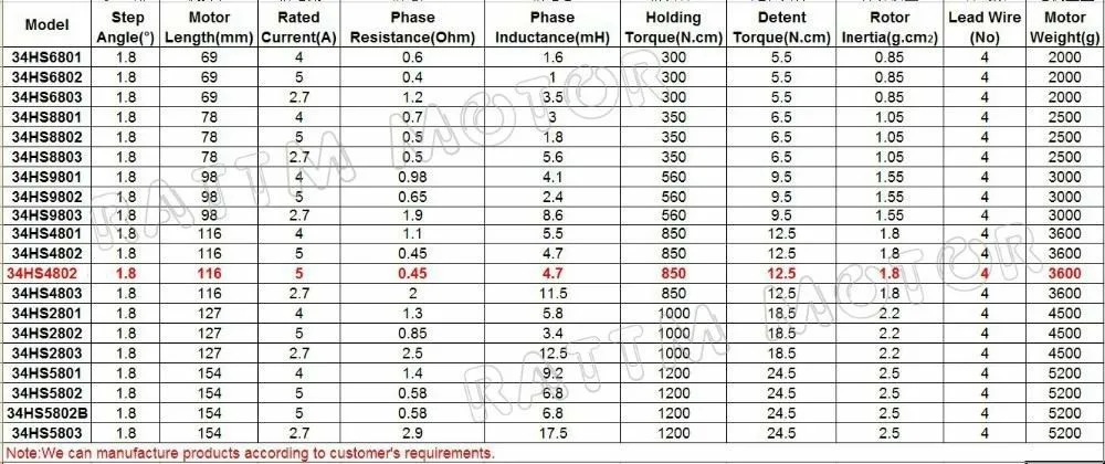 Технический паспорт (34HS4802B,5.0A,1230 унций или 8,5 кг. Удерживающий крутящий момент см, диаметр переднего вала 14 мм и длина вала 37 мм с гайкой; Задний вал диаметром 14 мм и длиной 37 мм круглый вал):