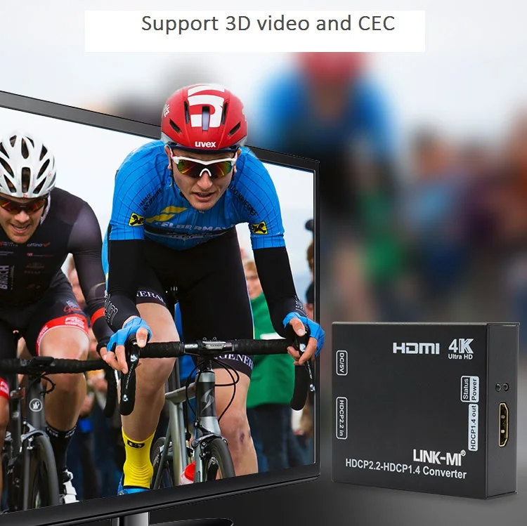 Клиенты могут приобрести дорогие переключатели с высокой пропускной способностью и Ресиверы с HDCP1.4, поэтому им понадобится конвертер HDCP2.2-HDCP1.4, чтобы убедиться, что источник HDCP2.2 может отображаться на дисплеях HDCP 1,4.