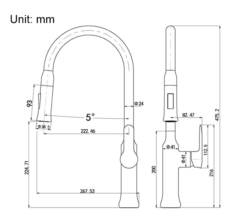 Длина излива 200 мм