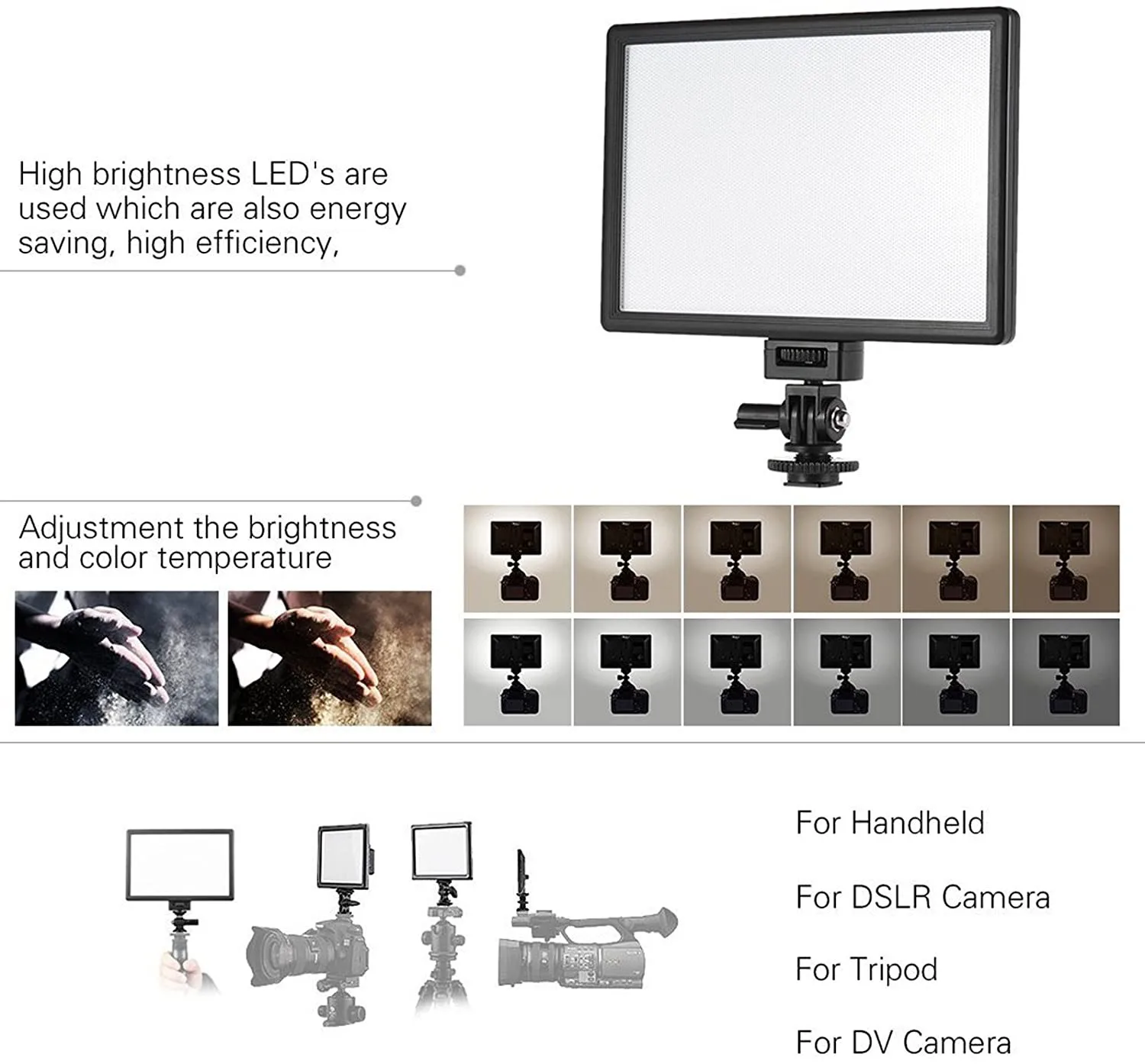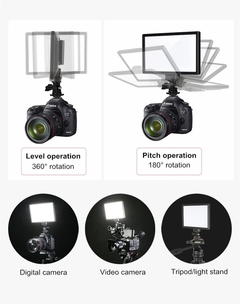 Супер яркий с освещением 810LUX, разработанный с световыми панелями вместо традиционных световых бусин, гораздо ярче 100 люкс, чем аналогичный заполняющий свет на рынке.