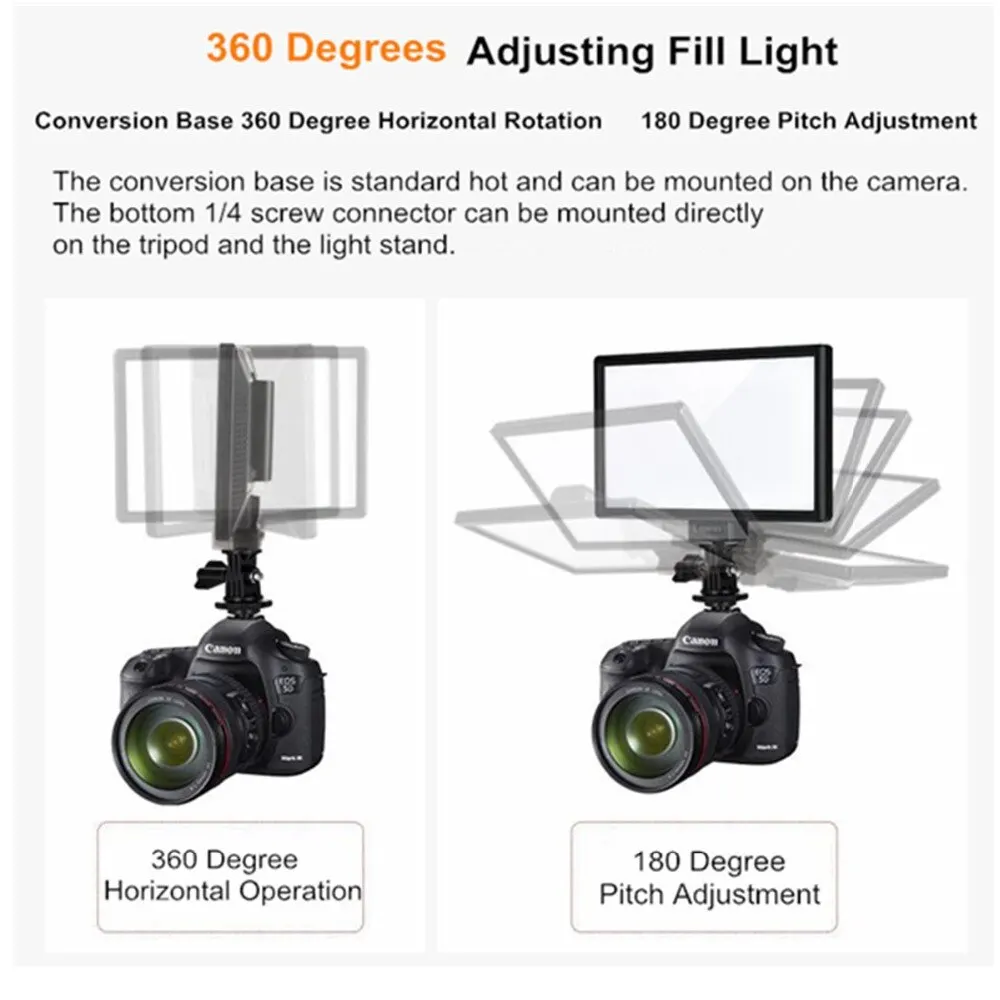 Светодиодный свет L116t можно изменить на более лучший (360 ° по горизонтали, 180 ° вверх и вниз).