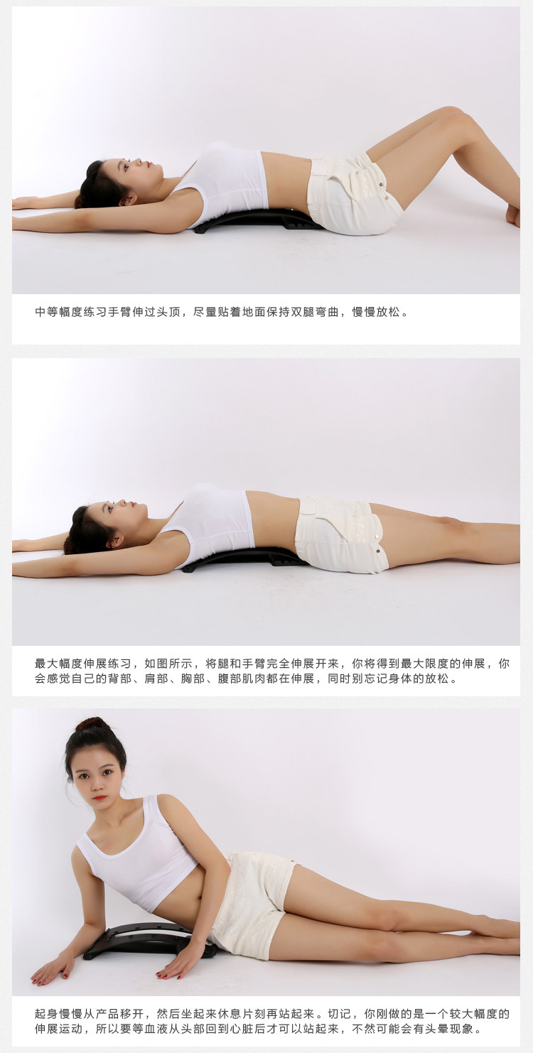 Поддержка Magic Back предназначена для того, чтобы сделать растяжение спины легким, безопасным, доступным и приятным. Он используется для облегчения хронической боли в спине, коррекции постурального дисбаланса, восстановления естественной кривизны спины и улучшения гибкости мышц плеч и спины. Регулируется до 3 различных уровней, просто установите его на тот, который подходит вам больше всего, положите его на пол, чтобы растянуть, кровать, когда вы отдыхаете, или даже положить его на стул, когда вы сидите в течение долгих часов!