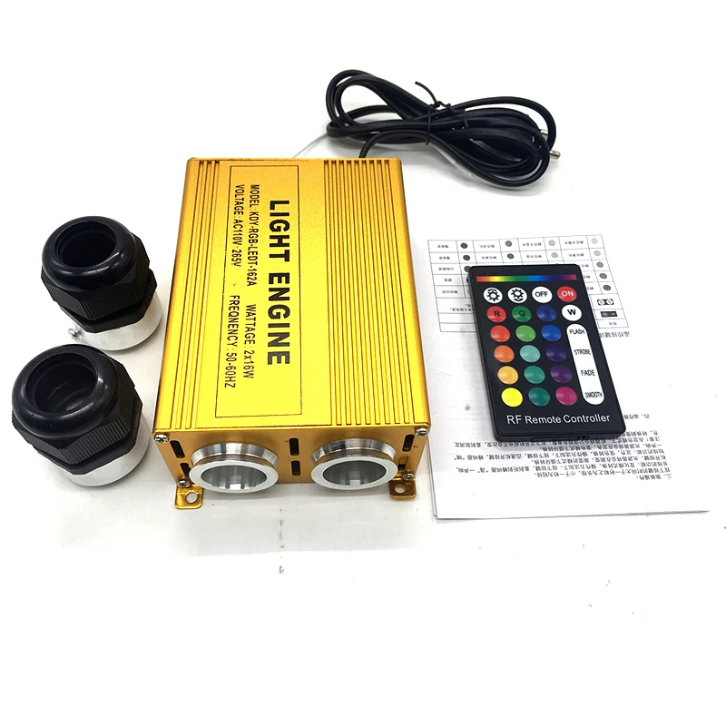 Золотой Алюминиевый двойной головкой 2*16 Вт светодиодный волоконно-оптический двигатель 32 Вт RGB светодиодный волоконно-оптический светильник с 24 клавишами RF пульт дистанционного управления волоконно-оптический светильник