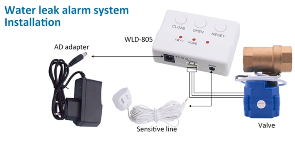 Система сигнализации утечки воды с автоматическим запорным клапаном,Wildely use,Более высокая чувствительность, более низкая стоимость, один год гарантии